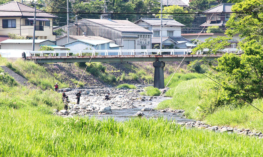 毎年5月20日朝5時、東日本で一番早く鮎釣りが解禁となり、多くの太公望が訪れます。上流にはワサビ田が作られ、淵の木立には「ヤマセミ」、「カワセミ」が生息しています。